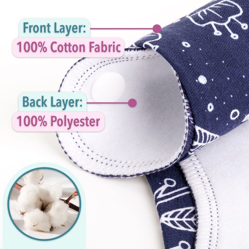 • Our baby bibs are made of 100% cotton on the front and polyester fleece on the back. The fabric is very soft and absorbent, keeping your baby dry even with the drooliest babies. These stylish baby bibs come in various colors, so you can find one that matches all your outfits.