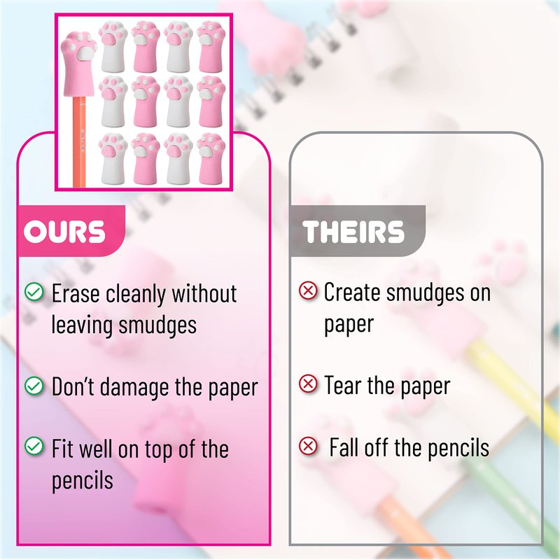 - Mr. Pen cat paw top erasers are made from high-quality rubber, making them perfect for precise and smudge-free corrections on almost any type of pencil.
