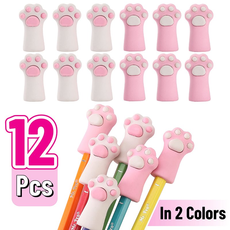 Mr. Pen- Cat Paw Top Eraser, 12 Pack, Cute Erasers for Kids, Pencil Erasers Toppers, Fun Erasers, Kids Erasers, Fun Erasers Kids, Pencil Top Erasers for Kids, Pencil Toppers, Cap Erasers, Eraser Caps