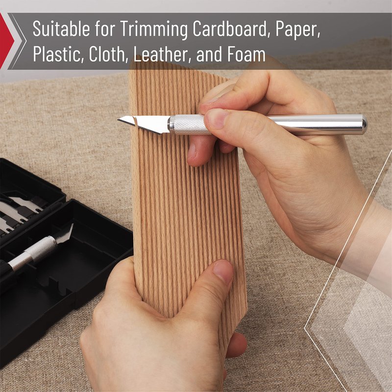 - Includes: 3 x Precision Knife Handle + 13 x Fine Point Blades In Different Size and Shapes For Exact Cuts