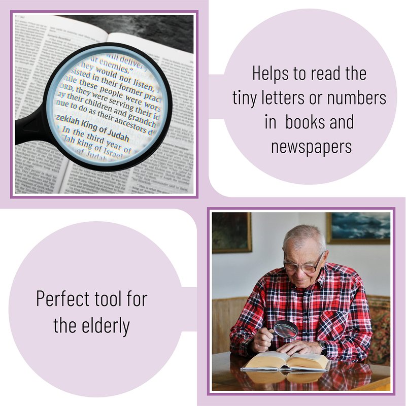 - The handle with ergonomic rubber is soft and comfortable, and the non-slip rubber coating helps you grip it easily. Our magnifier glass lens's thick and sturdy rubber frame ensures it stays perfect.