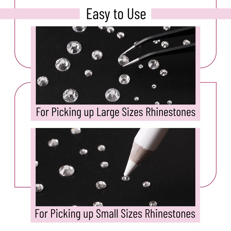 - Package includes 2000 pcs of clear rhinestones, 1 tweezer, and 1 pick-up pen; the rhinestones are not hotfix and need glue for sticking (glue is not included).