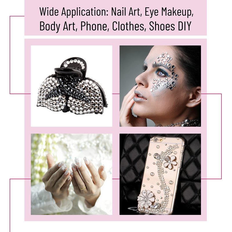- The mixed sizes of round glass gems can meet your DIY needs; you can use them to decorate your nail art, eye makeup, body art, hairpins, phone cases, etc.