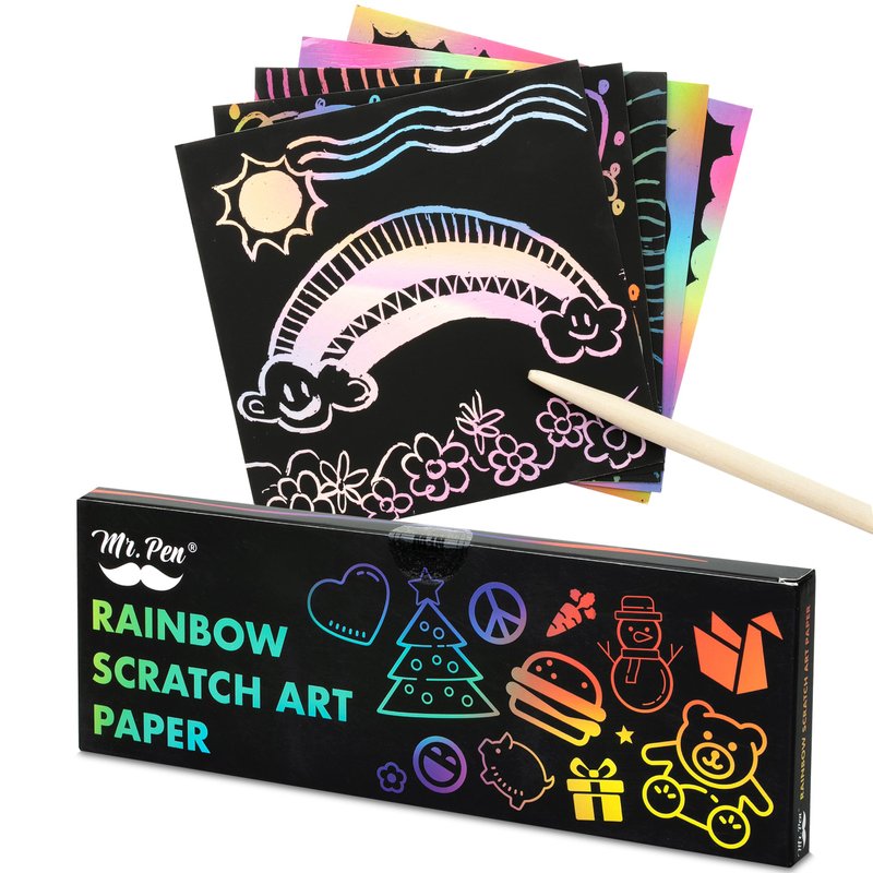 - Mr. Pen scratch paper art is perfect for kids of all ages; It allows them to express their creativity freely and surprise people with their unique drawings. Plus, these mini notes are great for classrooms, holiday treats, gift baskets, or random acts of kindness!