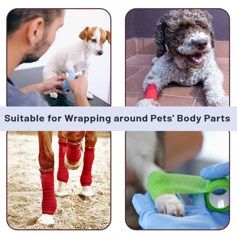 - Vet wrap is suitable for sports protection, first aid, sprains, and swelling on all parts of the human body, like finger, ankle, wrist, feet, etc. It also serves as a vet wrap for pets.