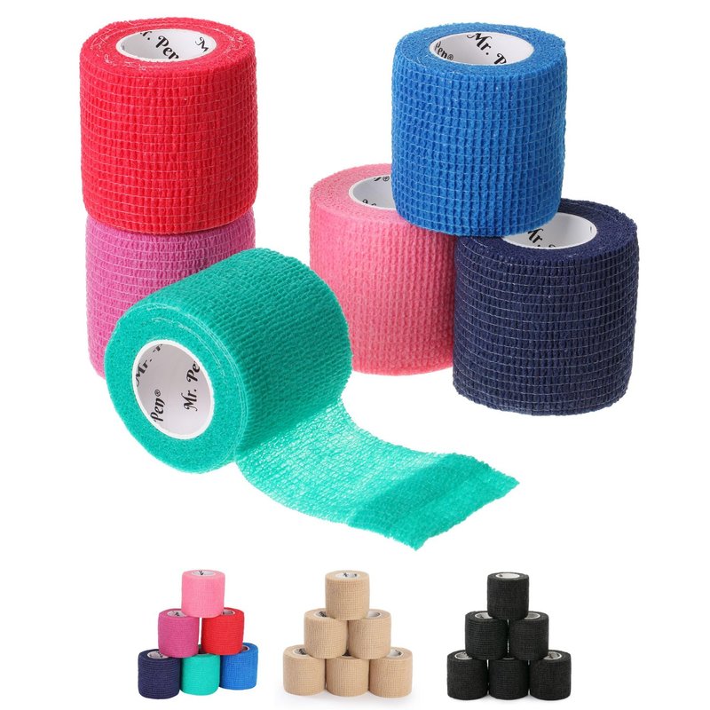 Mr. Pen- Self Adhesive Bandage Wrap, Assorted Colors, 2" x 5 Yards, 6 Pack, Elastic, Self Stick, Stretch, Self Adherent, Medical Bandage Wrap