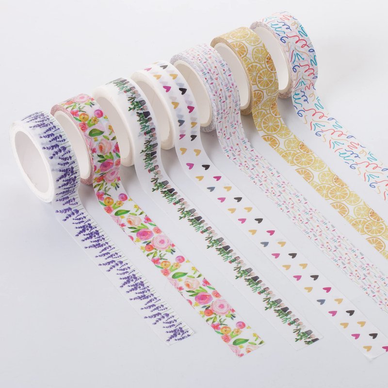 - 3 different washi tapes are perfect for different scenarios. 0.6 inch (1.5cm) wide x 7 tapes; 0.3 inch (8mm) wide x 7 tapes; 0.12 inch (3mm) wide x 7 tapes