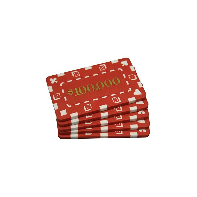 MRC 5 Pcs Denominated Rectangular Poker Chips Plaques $100000 Red