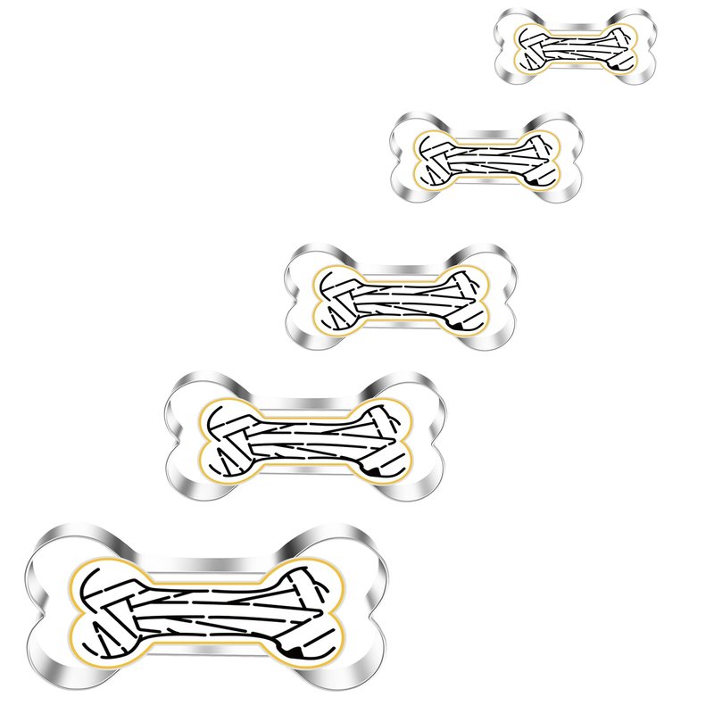MrCookie Bone Cookie Cutters,5 pcs of different sizes,they are designed from small to big size,can meet what you need.