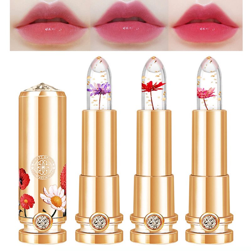 - 【Color Changing Lipstick】The Crystal Flower jelly lipsticks can change their color according to lip color and temperature, which can further improve dull lip color