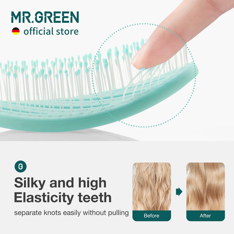 MR.GREEN Hollow Out Hair Brush Scalp Massage Combs Hair Styling Detangler Fast Blow Drying Detangling Tool For Wet Dry Curly Hair (Green)