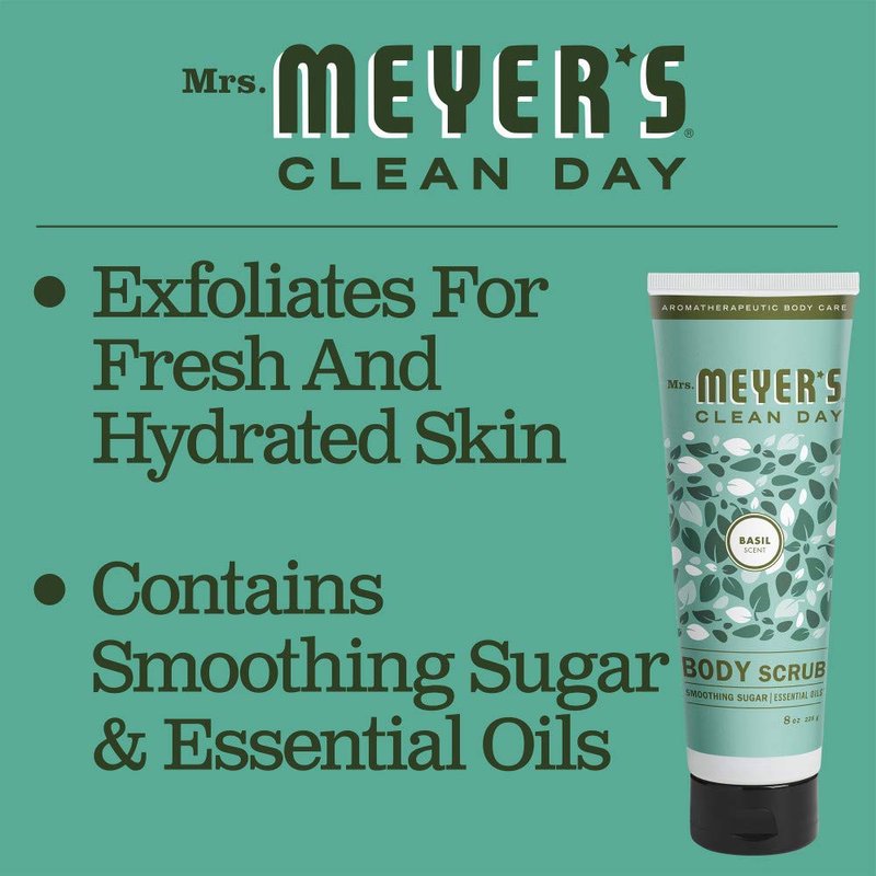 MRS. MEYER'S CLEAN DAY Exfoliating Body Scrub, Sugar Scrub that Leaves Skin Feeling Hydrated & Fresh, Made with Essential Oils, Basil, 8 oz