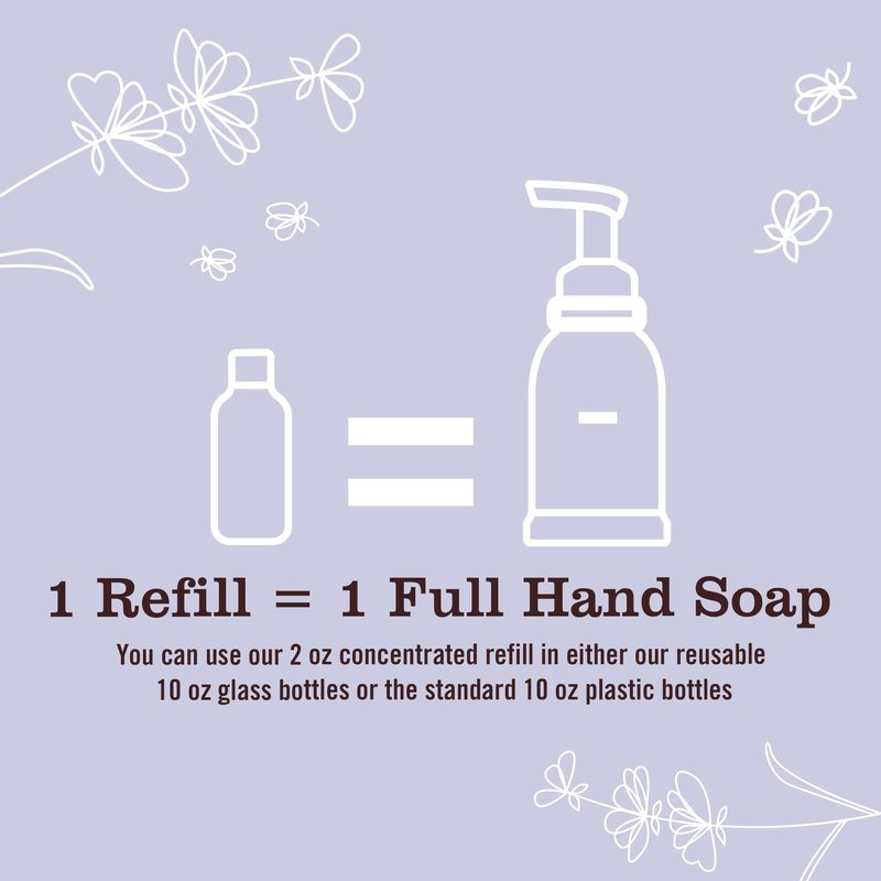 - Mrs. Meyer's Clean Day 2 oz Concentrated Refill is equal to 1 full Foaming Hand Soap using our 10 oz reusable glass or plastic bottles. This 4 count equals 4 full Foaming Hand Soaps
