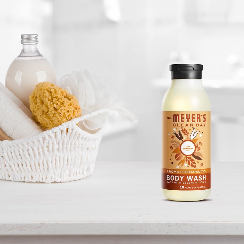 MRS. MEYER'S CLEAN DAY Moisturizing Body Wash for Women and Men, Biodegradable Shower Gel Formula Made with Essential Oils, Oat Blossom Scent, 16 oz
