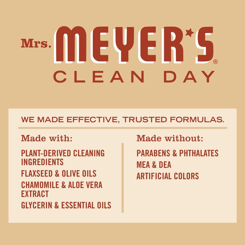 - Mrs. Meyer's products are made with cruelty-free formulas and are Leaping Bunny certified.