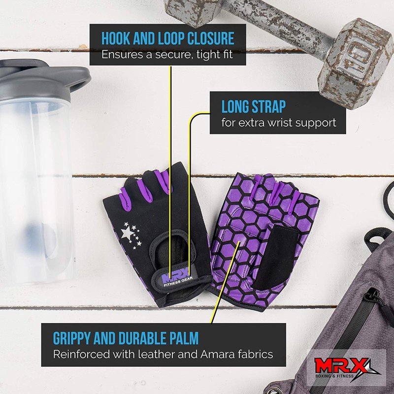 MRX Adjustable Weight Lifting Gloves Fingerless Gloves for Women, Reinforced Palm and Secure Closure, Leather Hand Protection Gear for Gym, Training and Exercise