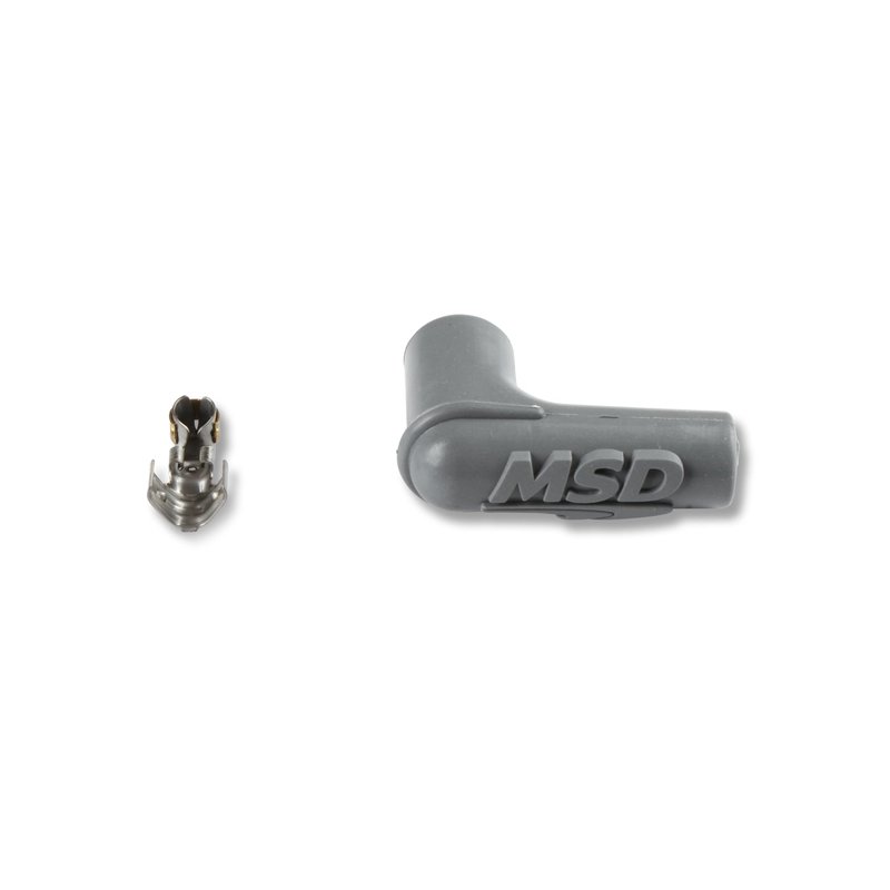 - Sturdy metal housing finished in red, supplied with a 90 degree terminal and boot
