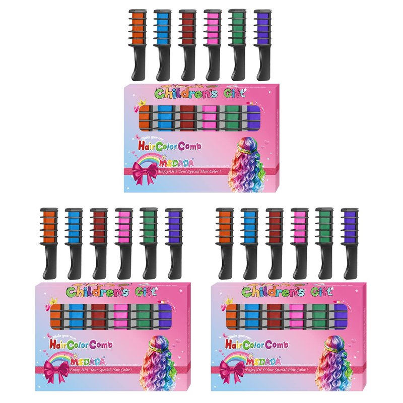 MSDADA 3 Boxes of Hair Chalk for Girls - 18 Pcs New Hair Chalk Comb Temporary Washable Hair Color Dye for Kids - Birthday Christmas Halloween Gifts Toys for Girls Kids Age 6 7 8 9 10 11 12 Year Old