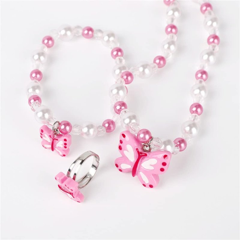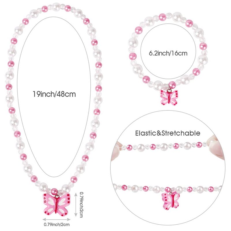 Butterfly Stretch Necklace Little Girl Toddler Necklace Bracelet Set, Little Princess Jewelry Kids Play Necklaces Butterfly Rings for Kids (B)