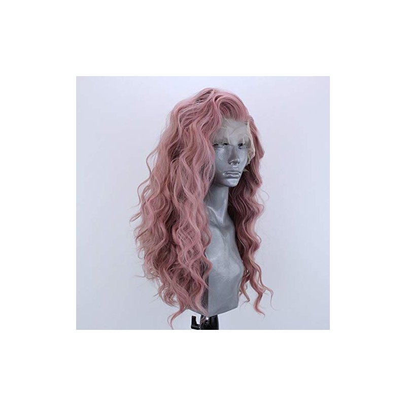 Msthoo Pink Lace Front Wigs for Women Long Curly Wavy Synthetic Wig Clueless Heat Resistant Fiber Hair 24 inches