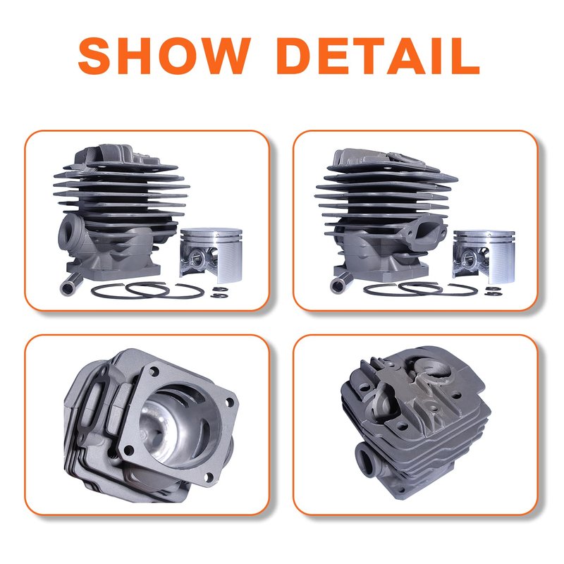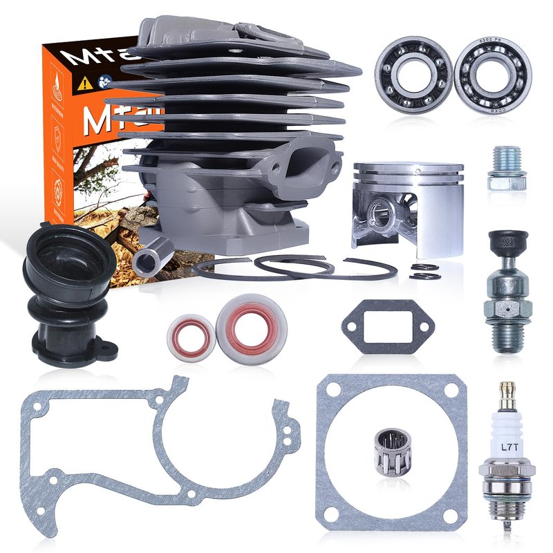 - Package include: 1x Cylinder Piston Kit,1x Intake Manifold,1x Piston Needle Bearing,1x Spark Plug,1x Decompression Valve, 1x Cylinder Plug,2x Crank Bearing,2x Oil Seal,1x Crankcase, Cylinder, Muffler Gasket.