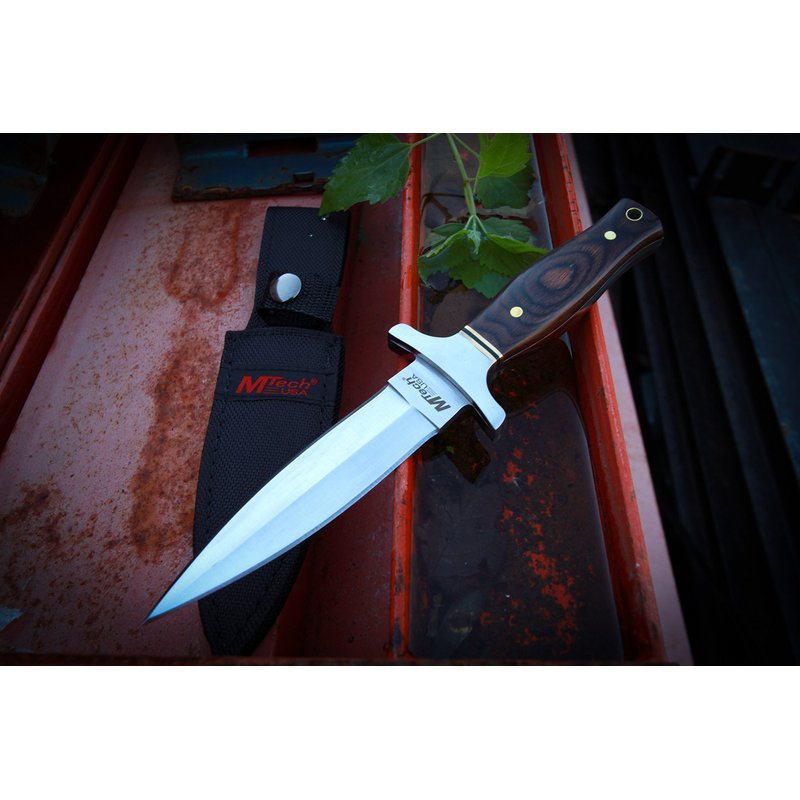 MTech USA – Fixed Blade Knife – Satin Finish Stainless Steel Blade, Brown Wood Handle with Stainless Steel Bolster, Includes Nylon Sheath - Hunting, Camping, Survival, Tactical – MT-20-03