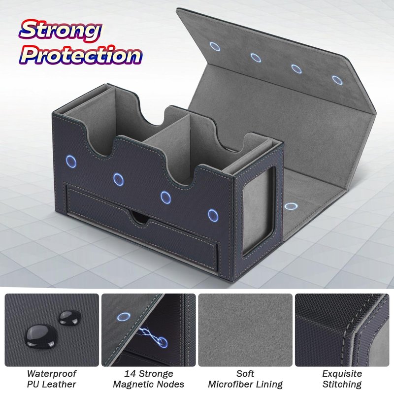 - 【Premium Protection with Soft Touch】 Equipped with robust magnets, our mtg deck box commander ensures a secure seal during transport, protecting your cards from damage. Crafted from sturdy PU leather, the exterior offers robust shock resistance and water resistance. The interior, crafted with luxurious microfiber akin to silk, safeguards your cards from any scratches or damage.