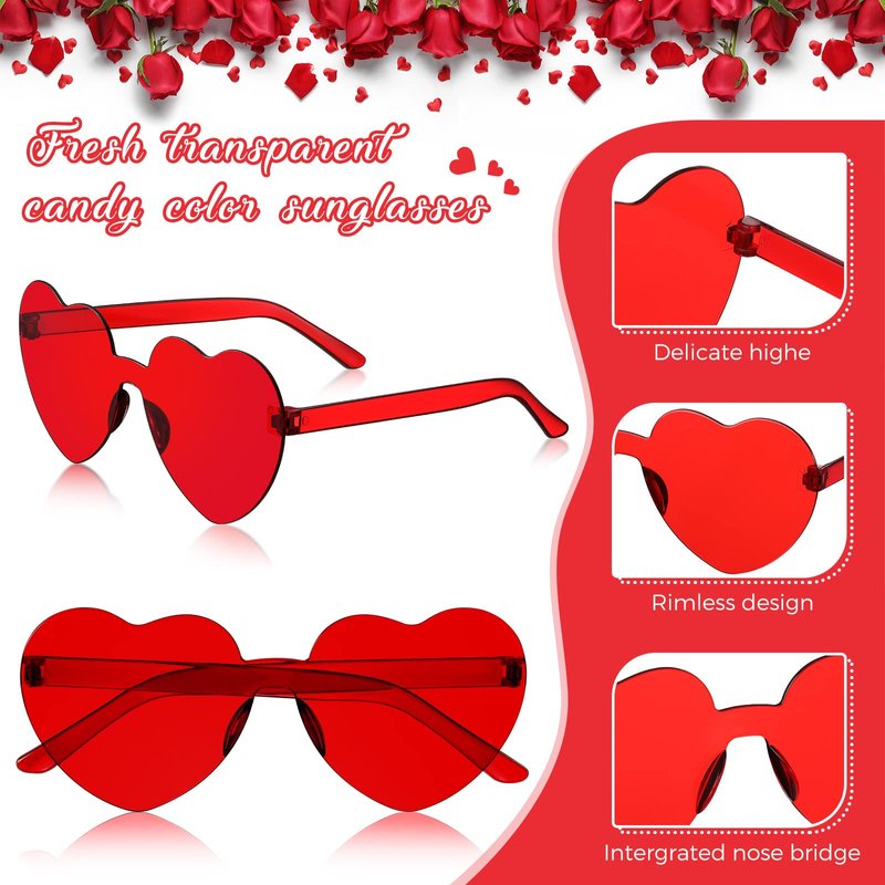 - Stylish party glasses: the heart shaped rimless sunglasses look chic and novelty, making you look more attractive, suitable for most face shapes; They are made of quality PC material, lightweight and strong, comfortable to wear