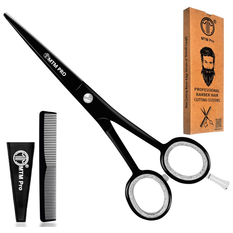 MTM PRO Professional Hair Cutting Scissors 6", Barber Scissors to Cut Hair, Hair Shears for Hair Cutting, Premium Stainless Steel Barber Shears for Men & Women, Kids, Adults, & Pets (Black, 6")
