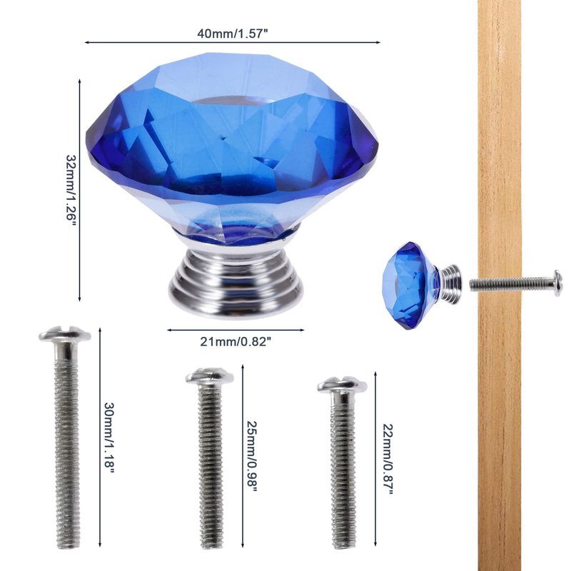 - [Excellent Material] : Blue clear cut crystal glass and solid alloy base, shiny polished chrome, sparkling, luxurious diamond shape, glass cabinet knobs is a great decoration for home or office