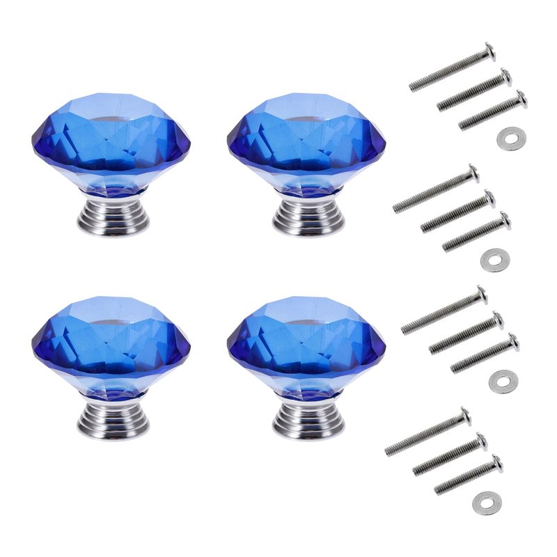 Mtsooning Crystal Cabinet Knobs, 4PCS Diamond Glass Handles Drawer Pulls for Dresser Closet Wardrobe Cupboard Door Kitchen Bathroom Furniture Decoration, with Mounting Screws(Blue)
