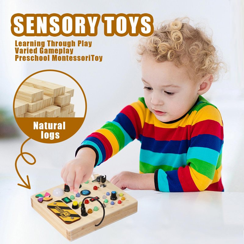 - High Quality Sensory Toys-Our toddler fidget toys are made of eco-wood, the product has smooth edges and all the various buttons, switches and shifters are securely installed. The busy board is high quality and very sturdy. You don't have to worry about your baby breaking it, it is very safe for your child. The light is soft and won't hurt children's eyes
