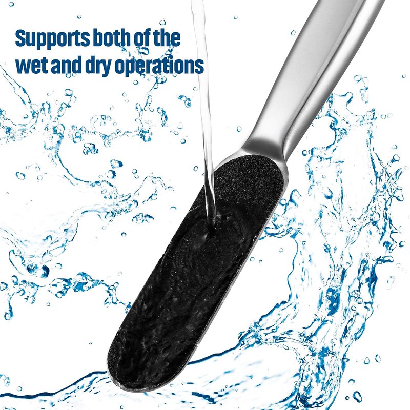 - Using tip: the foot scrubber performs well on both dry and wet foot surfaces that allows the user to work by their own preference and satisfaction; The abrasive paper is waterproof, not easy to fall off in the water, please wash the tool regularly and dry it under the sun