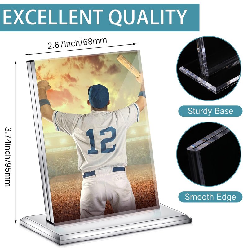 Features:The sports card display comes with a flat base can stand stably on the table, desk, shelf or other smooth surfaces, and you can display them in your living room, bedroom, bathroom, office, study, classroom or other places.You can prepare these baseball card display stands for your family members, friends, colleagues, classmates, boyfriend or other people who ar fond of sports and collecting, they will be happy to receive these practical items.Specifications:Material: acrylicColor: clearSize: approx. 68 x 95 mm/ 2.68 x 3.74 inches in inner size Package includes:3 x Acrylic card standsNotes:Manual measurement, please allow slight errors on size.The color may exist a slight difference due to different screen displays.Please check your cards' size before ordering.
