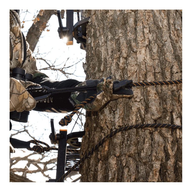 - DURABLE MATERIALS - Stay attached to the tree at all times; Prusik knot made of reflective material that enhance daytime and low-light visibility; slides easily up and down the rope during ascent and decent and stops you immediately should a fall occur