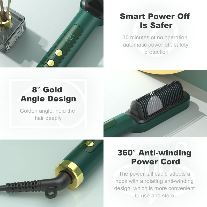 - 【GOLD ANGLE DESIGN】The gear of the heating plate of this straight hair comb has an 8° gold included angle. When you use it, it can hold your hair deeply and prevent your hair from falling out to a certain extent. The use process is more convenient, easily help you create beautiful, smooth, shiny straight hair, and help you go out beautifully.