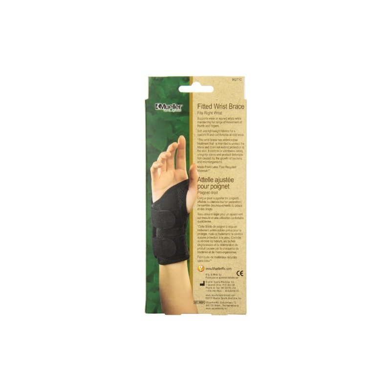 Mueller Fitted Wrist Brace Green Line Right Fitted Wrist SM/MD 5-8"