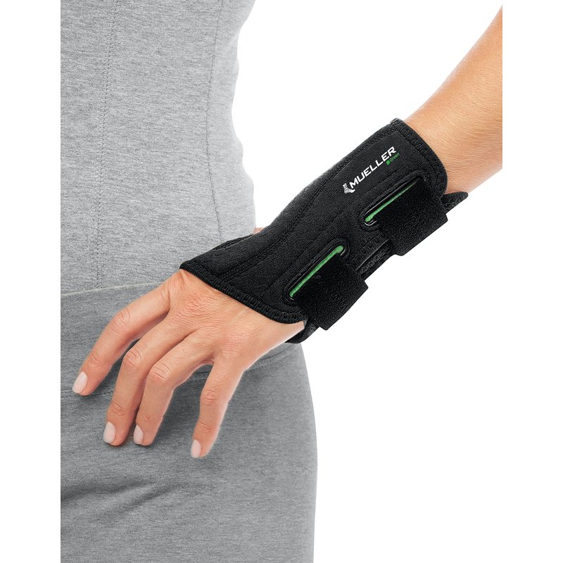 Mueller Sports Medicine Green Fitted Wrist Brace for Men and Women, Support and Compression for Carpal Tunnel Syndrome, Tendinitis, and Arthritis, Left Hand, Black, Small/Medium