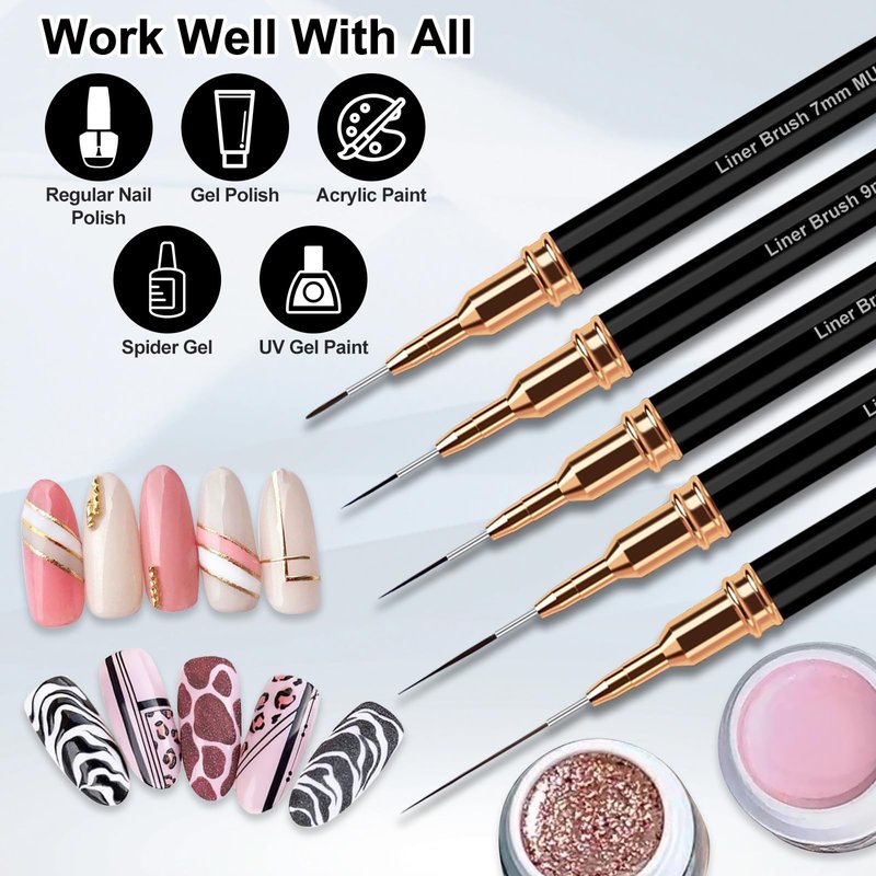 - EFFICIENT CREATIVITY - With This Nail Art Liner Brush, You Can Quickly Turn The Ideas In Your Mind Into Reality, And In A Short Time, You Can Complete Stunning Nail Art Designs That Will Make Your Nails Stand Out From The Crowd.