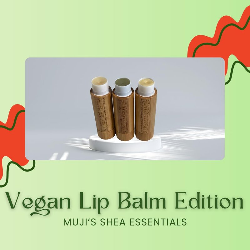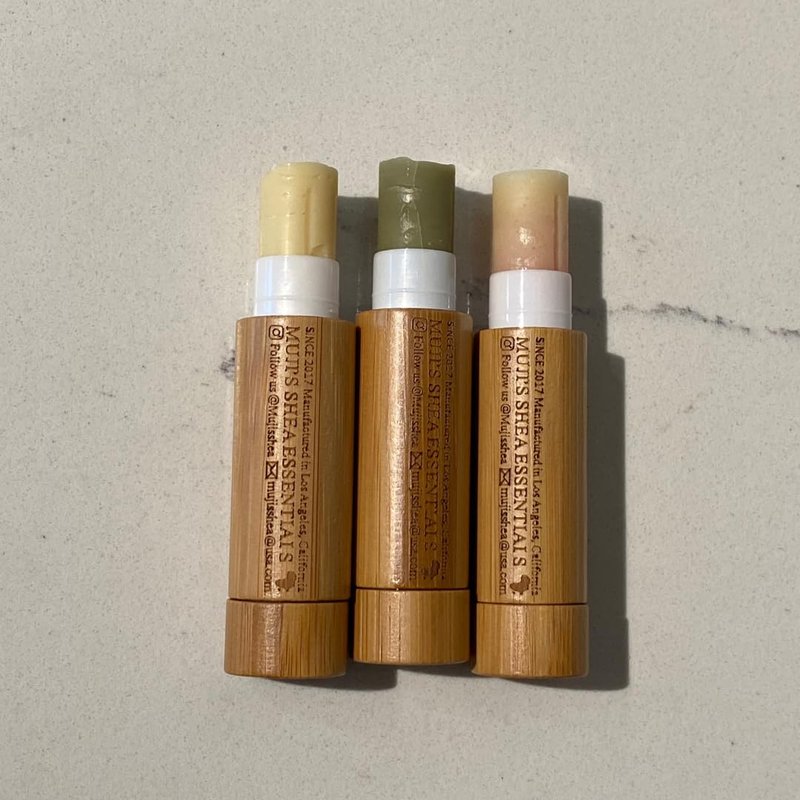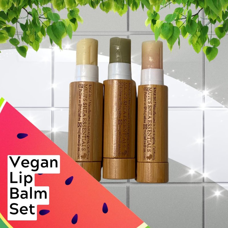 Muji's Shea Essentials Vegan Lip Balm Set of 3, Watermelon + Matcha + Raspberry Lip Balm, 18 grams, Plant Base All-Natural Lip Moisturizer, Bamboo Lip Balm Tube, Eco-Friendly, Cruelty-Free