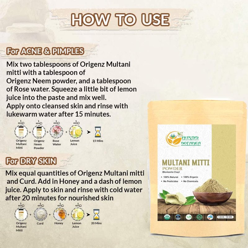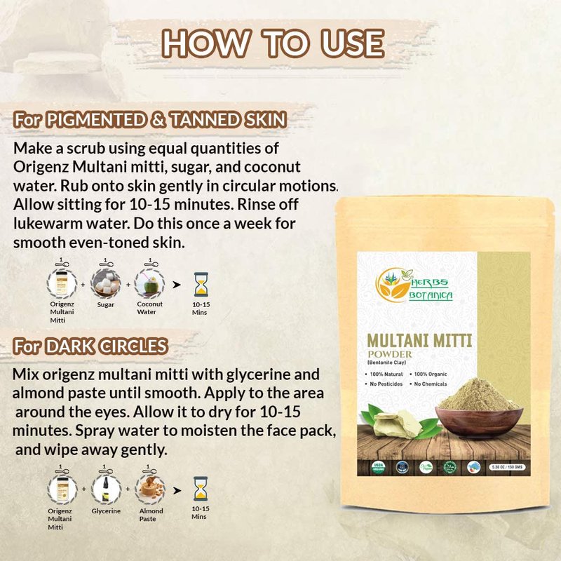 - ☑ Multani Mitti is a natural, organic and highly effective face mask that has been used for centuries in India for a variety of skin care and beauty purposes.