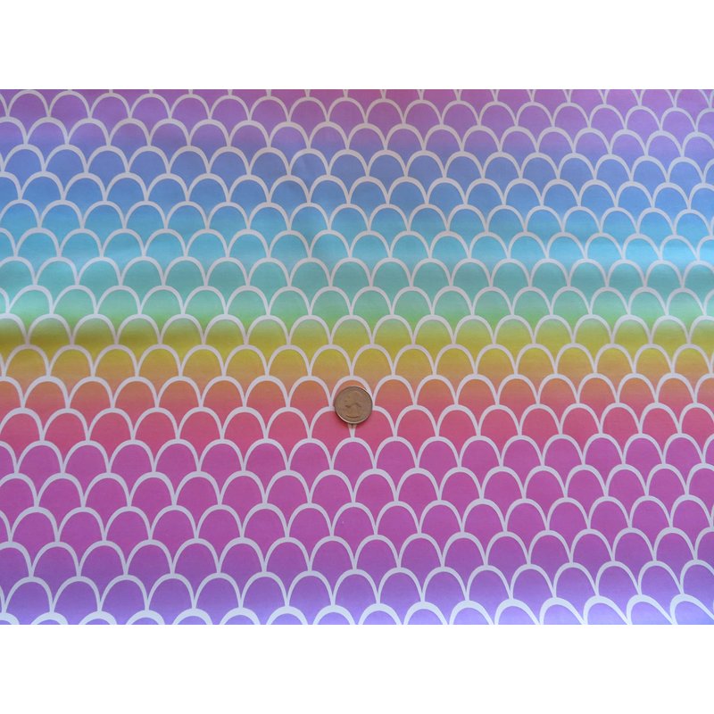 Multi Colored Fish Scale Design Purple and Aqua Cotton Fabric