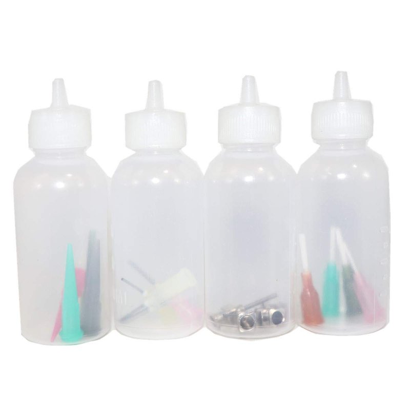 - Package included 4 pcs 1oz. plastic bottles with caps and 16 pcs diffferent size fine applicator tips