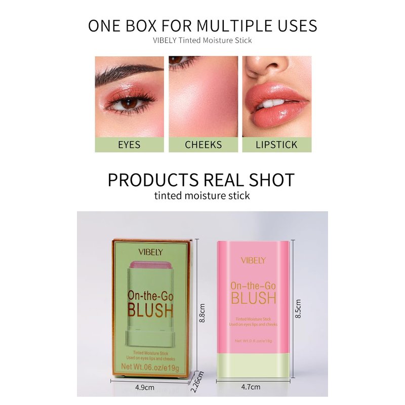 - 3-in-1 Cream Stick --- Cream blush stick can be gently applied to the skin, can be used as eye shadow, lipstick, blush three cosmetics. Just blend colors with your fingertips to achieve a natural, perfect matte look.