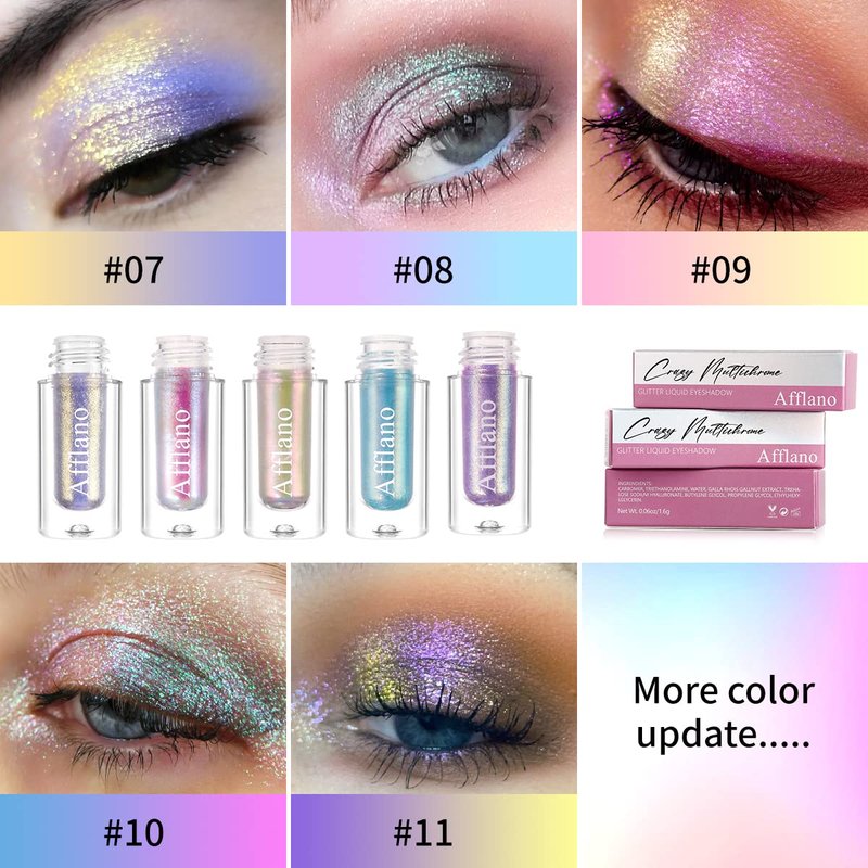 - Glitter Pink Metallic Eyeshadow : Holographic chameleon white pink shimmer liquid eyes shadows with color-changing technology innovations. The multi chrome liquid eyeshadow set is intense color shifting.Metallic chameleon liquid eyeshadow,color shifts become visible pink or gold shimmer when viewed at different angles on eyelid and in different lighting.Liquid eyeshadow kit perfect for mature face.