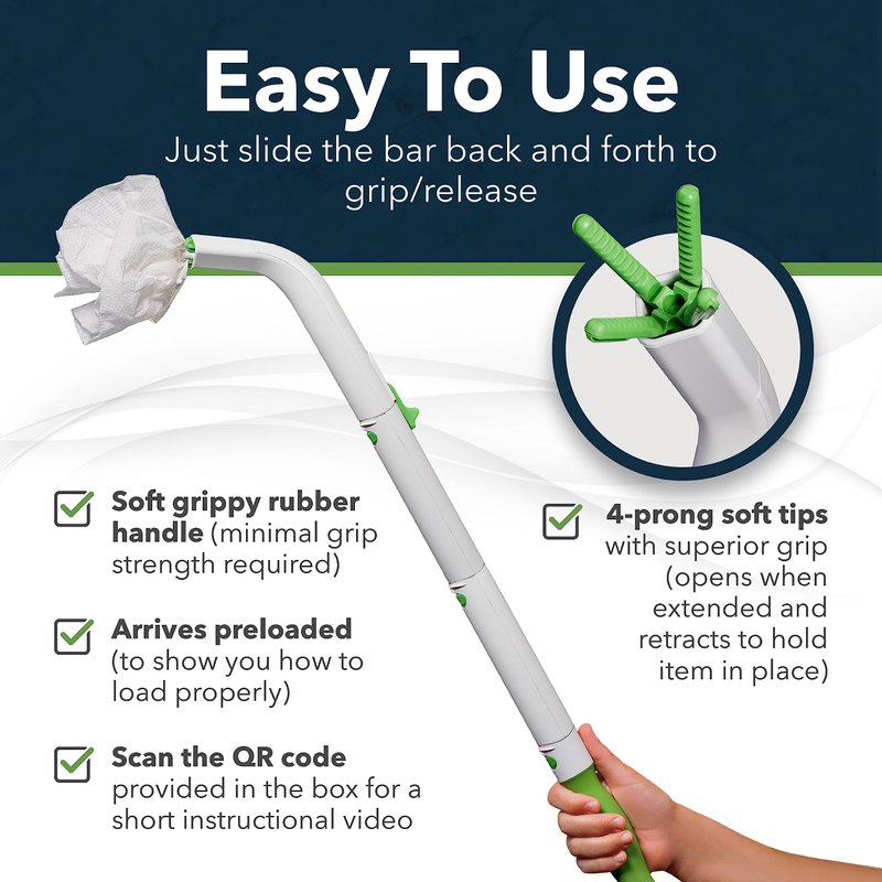 - STRONG, 4-PRONG GRIP - With FreedomWand’s strong 4-prong grip, you’ll never have to worry about your hygiene products coming off. You can comfortably get to hard-to-reach or tight crevices with FreedomWand, one of the top bathroom aids for wiping.