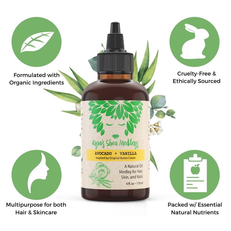 - 🌱 AVOCADO AND VANILLA OILS are the perfect combo for your daily care and gentle enough for use by women, men, and children. This Oil Medley is Safe, Healthy, and Effective (SHE-approved) to use for all hair/curl types and skin types. It is long-lasting, quickly absorbs, and increases the ability to retain moisture all day.