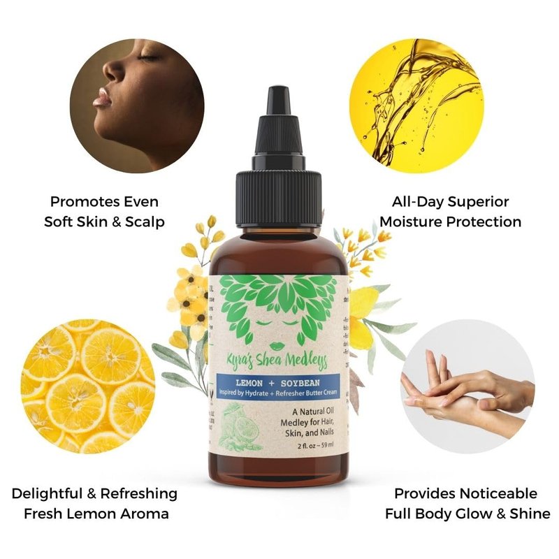 Multiuse Lemon + Soybean Oil Medley for Face, Body, and Hair - Natural Soya Bean Oil, Shea Nut Oil, Lemon Essential Oil, and Vitamin E - Seals in Moisture for Dry Skin, Scalp, & Nails - 2 oz
