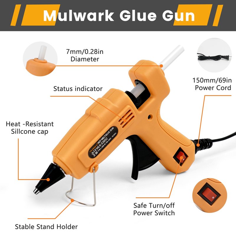 Mulwark Mini Hot Glue Gun Kit Fast Hot Glue Gun With Glue Sticks 30 pcs, Hot Glue Gun Sticks Mini for DIY Projects, 20W Hot Melt Glue Gun for Home Repairs and School Crafts.