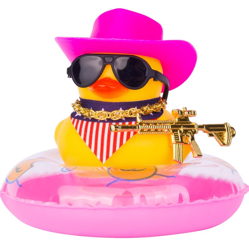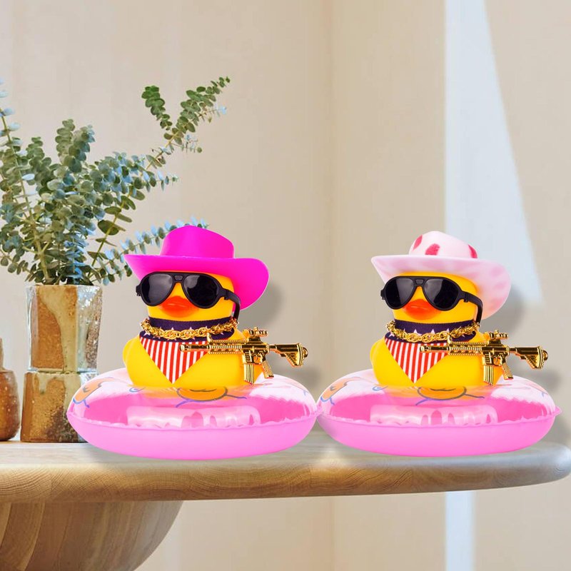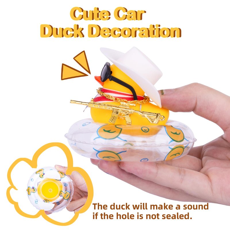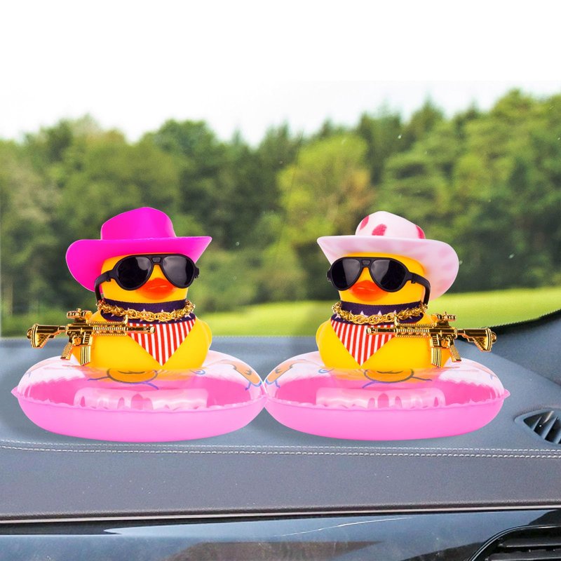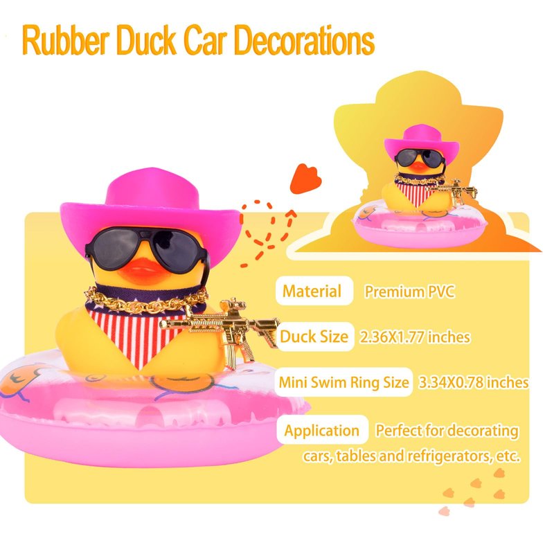 MuMyer Cowboy Duck Car Dashboard Decoration Swim Ring Car Rubber Duck Decoration Accessories with Mini Swim Ring Cowboy Hat Scarf Necklace and Sunglasses(B8-B US-P)